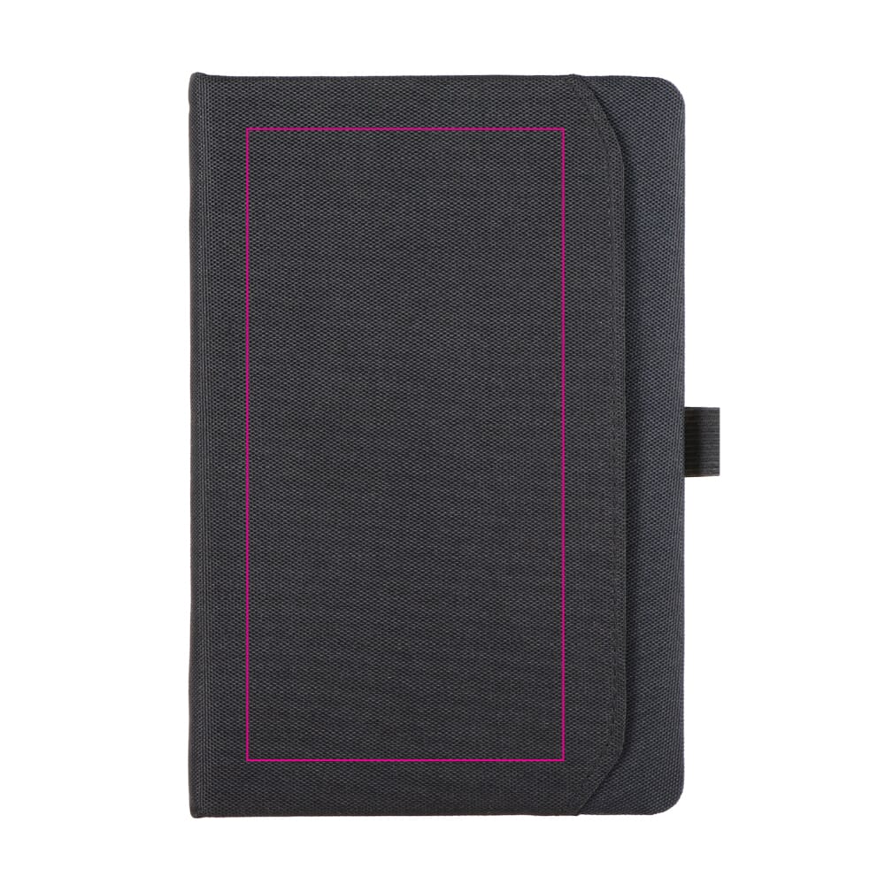 Executive notitieboek met 600D rPET-cover en voorvak (opening van boven naar beneden). Voorzien van penlus, leeslint en 80 gelinieerde crèmevellen. Duurzaam, stijlvol en ideaal voor vergaderingen of dagelijks gebruik.